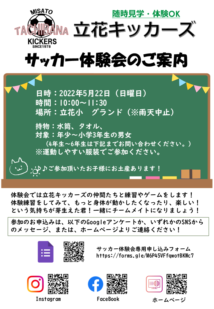 チラシ:立花キッカーズ2022年体験会20220522A4